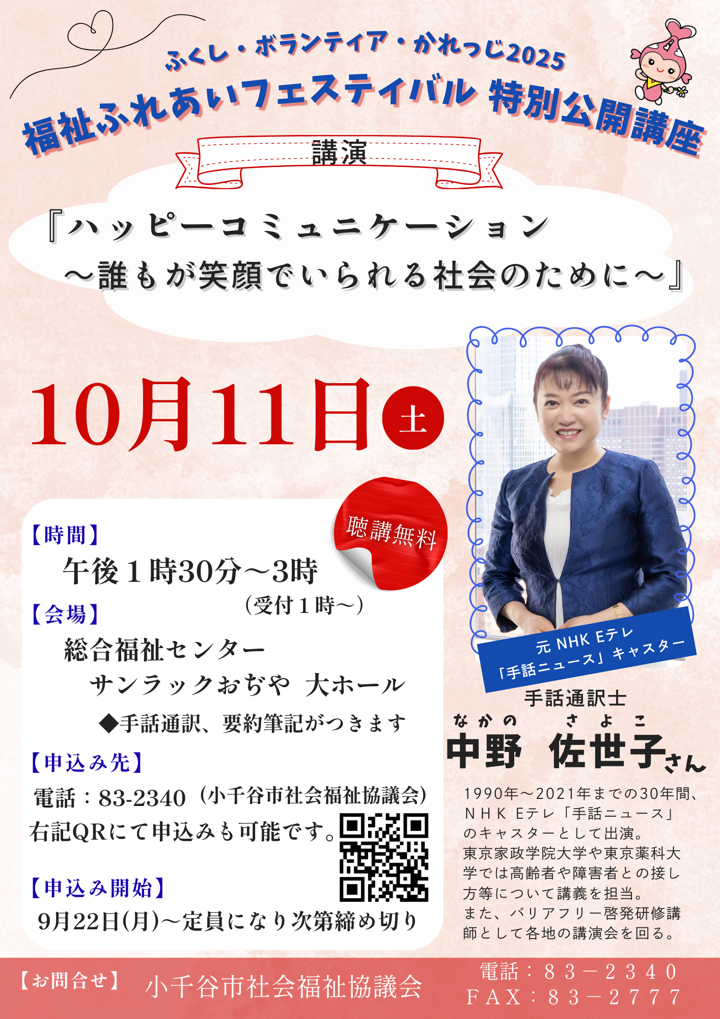 「福祉ふれあいフェスティバル特別公開講座」 ご案内